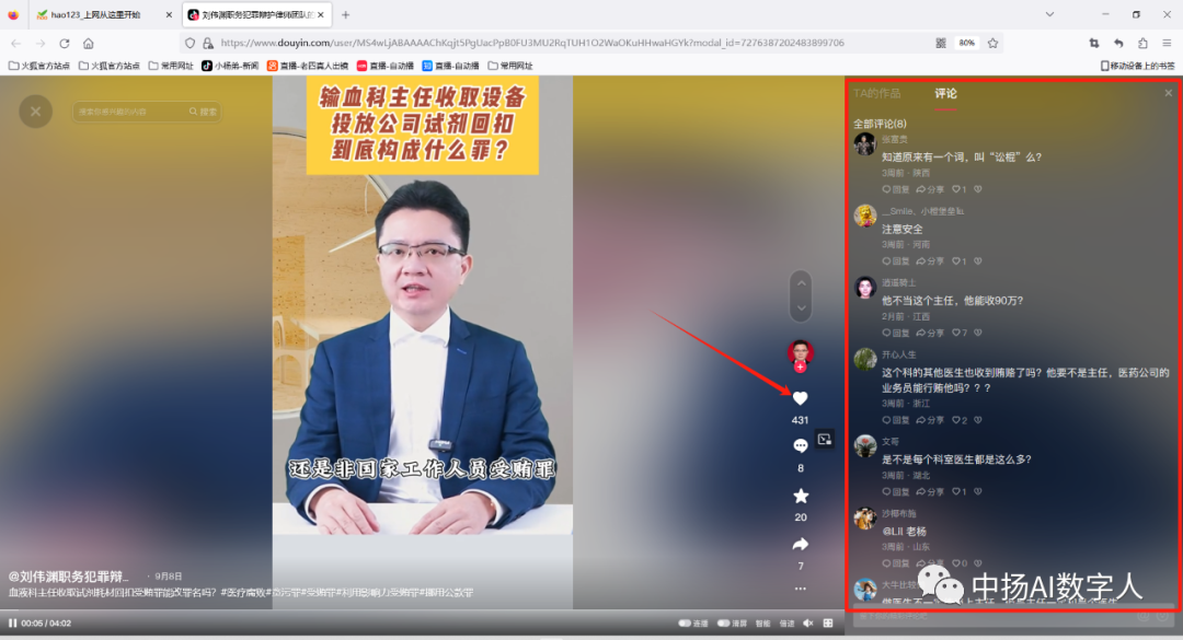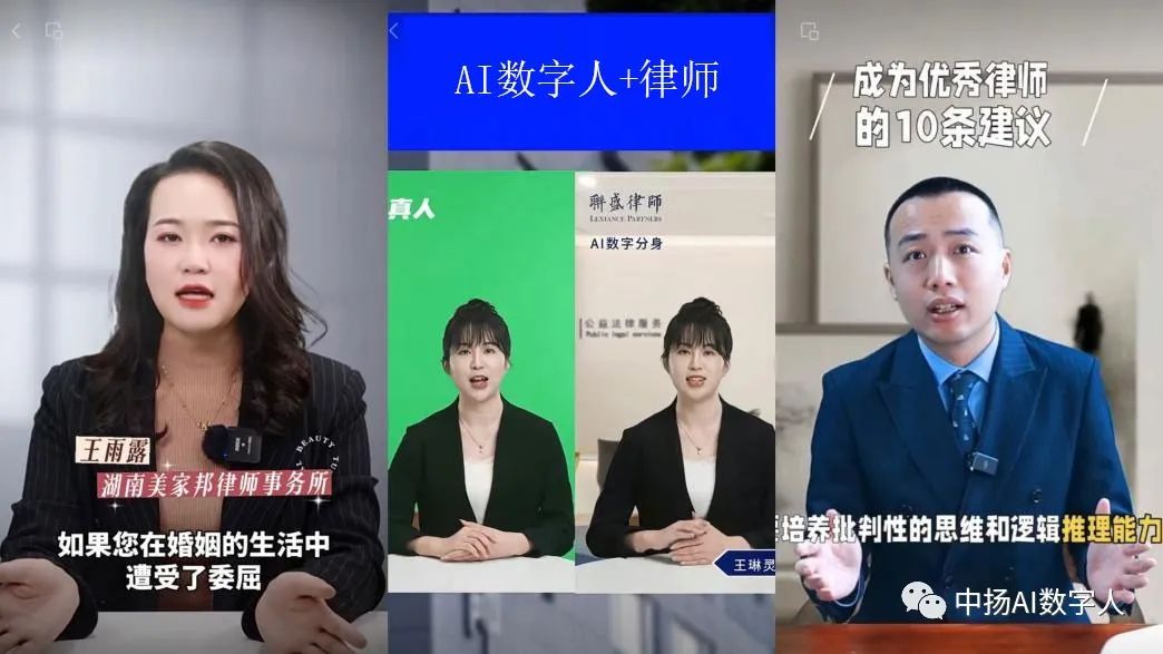 数字人短视频不仅能解决律师的工作效率问题,还能带来非常客观的业务和咨询量。有的律师主要聚焦婚姻家庭、心理咨询领域,有的律师主要经营财政金融、人资建工领域。每个律师的营销诉求不同,中扬AI数字人,可以为所有的企业定制化专属的AI数字人营销方案。有的合作律师反馈说。前来咨询的案子好几个都是客户直接一直在随着自己的短视频平台跟进。所以,数字人对律师的品牌运营还是很有帮助的,日常会带来一些咨询量,也有同行通过短视频来寻求业务合作。