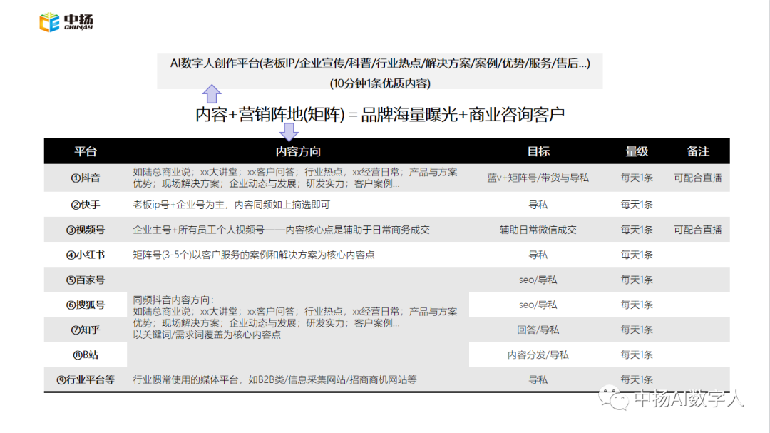 今年生意格外难,难在于没了【增量市场】,大家都在竞争【存量市场】,守着自己的一亩三分地的市场时代已经过去了。今天给大家推荐一套营销方案:AI数字人克隆+IP塑造+矩阵运营获客的解决方案;助力传统企业降本增效~