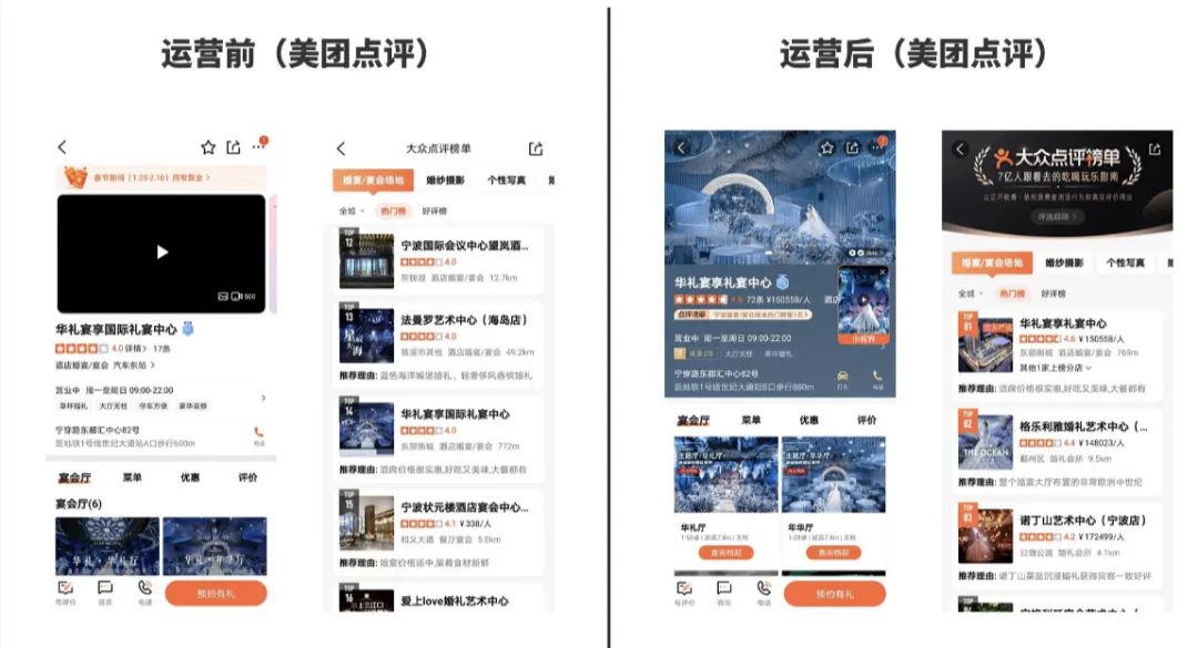婚运科技合作的商家有近百家,服务多家会员单位单月网络获客业绩提升100万+。不论是想要提升知名度、吸引目标客户,还是增加预订量、提高转化率,婚运科技代运营都能为宴会酒店带来有效的解决方案。