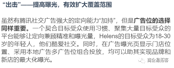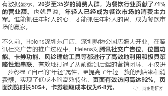 用户定向→门店曝光→卡券投放→效果统计,环环相扣,从前端到后端,从曝光到转化,信息流广告打通了营销闭环,使Helens收获了良好的营销效果。