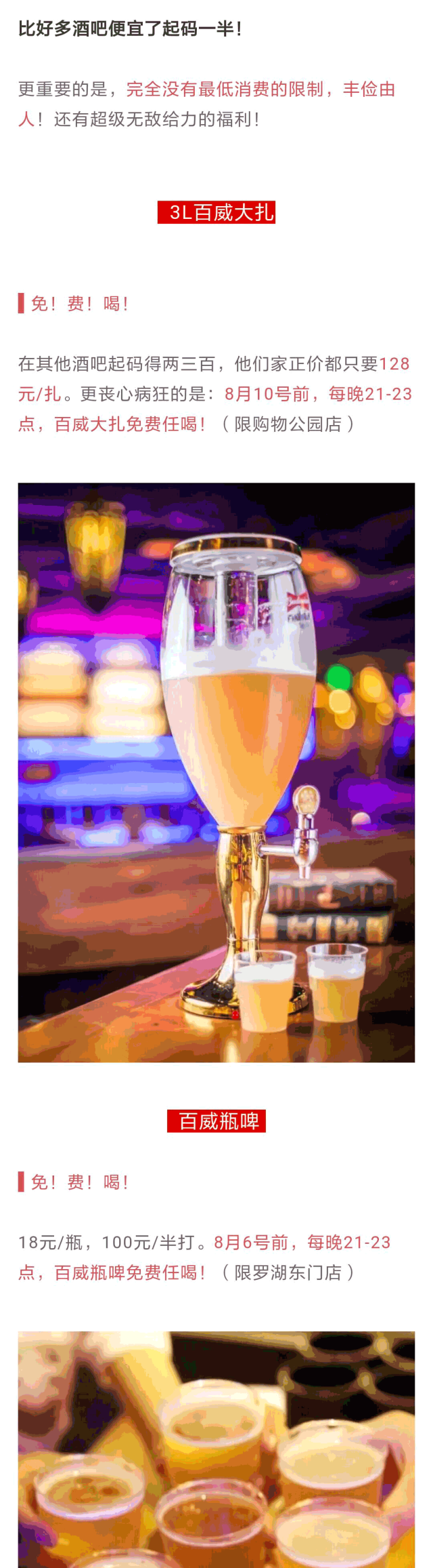 信息流广告有了足够大的覆盖还不够,真正让目标受众走进店里进行消费才是硬道理。所以,优化师为Helens设计了优惠卡券,以吸引用户关注并促成进店消费。用户点击信息流广告链接,即可进入卡券领取页面,领取“开业畅饮兑换券”,享受“百威啤酒1分钱畅饮1个月”。通过卡券投放,消费者在线上即可知晓并获得品牌的优惠,能有效刺激他们走进店里进行消费。此外,极具社交属性的卡券转赠机制,还可以促使大家呼朋唤友,让更多目标受众进店消费。