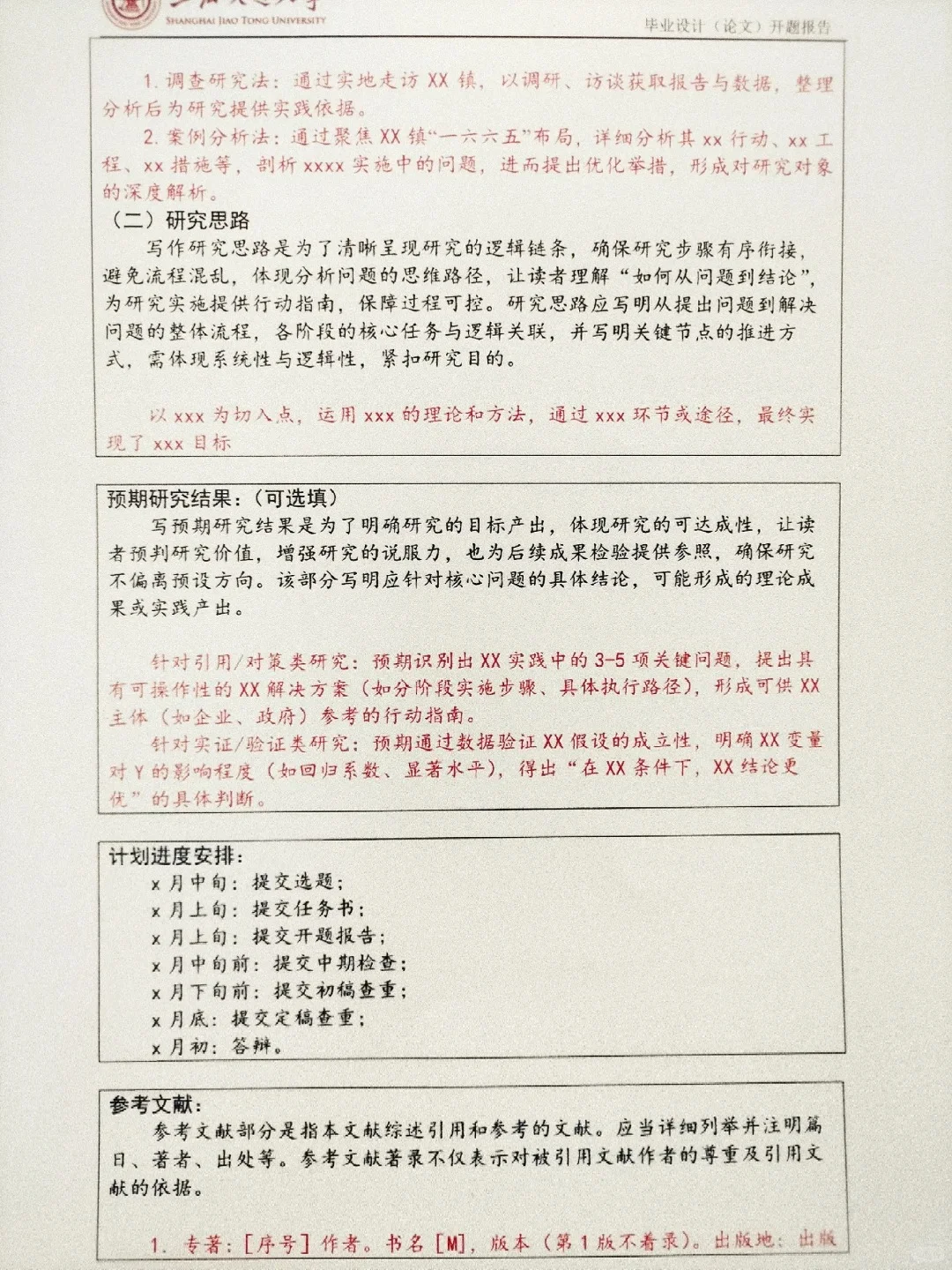8.预期研究成果: 基本也有模板可循!写写你预计能达成什么目标就好,比如:顺利完成毕业论文、在期刊上发表文章、或者解决某个具体学术难题... 形式和内容比较灵活,按自己情况来写就行!