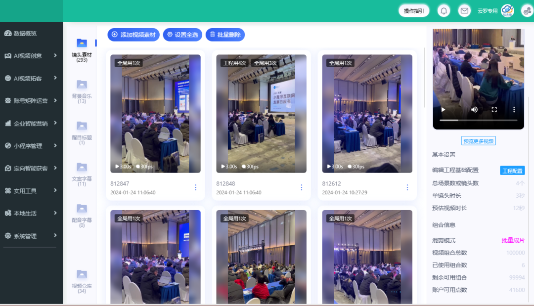 市面上先进的短视频剪辑软件很多,甚至有些只需输入一段文字就能自动生成作品,虽然看上去很先进但它只适合一般的种草养号并不适合普通商家,因为商家的推广必须基于商家实体店的真实的场景和商家当时的营销活动来进行,所以商家需要的是基于他的素材进行快速剪辑创作,而抖去推就是专为商家提供专属化高品质低成本短视频作品创作的系统。