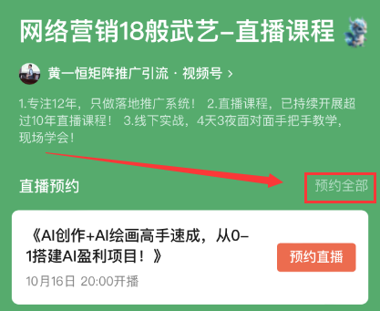 识别二维码,找到右侧“预约全部”即可一键预约直播课程!