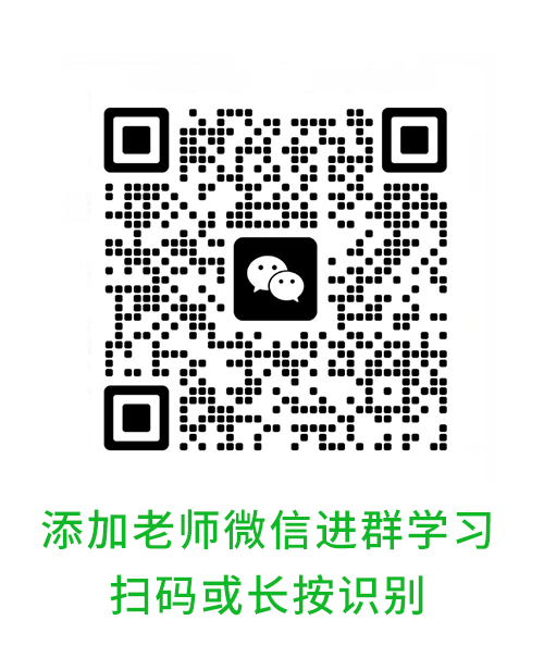 扫码或长按识别添加下方老师微信,备注:直播(不备注不拉群哦),拉你进最新的直播学习群,一起交流互动!