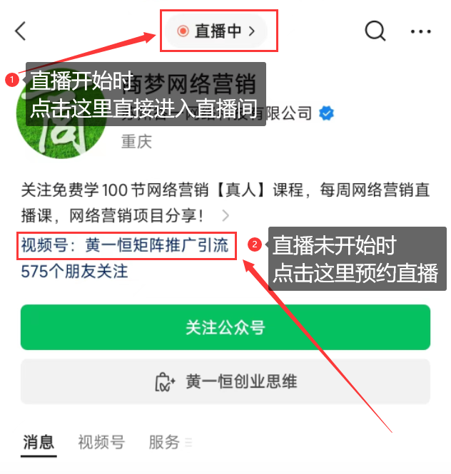 2.点击公众号上方的“直播中”即可进行直播间。