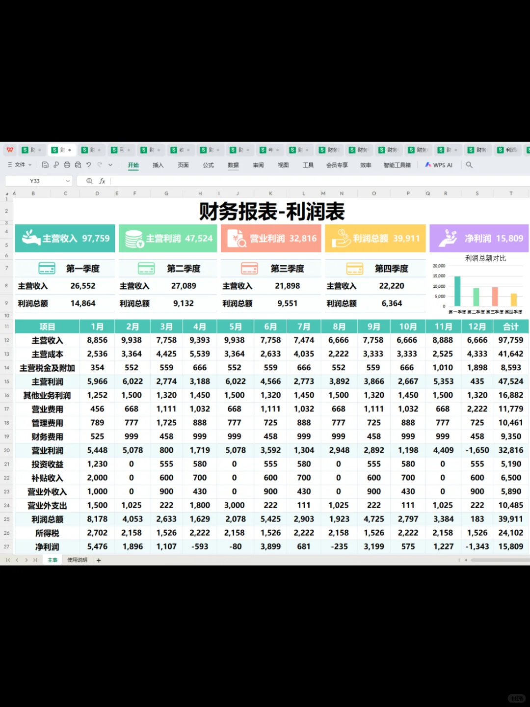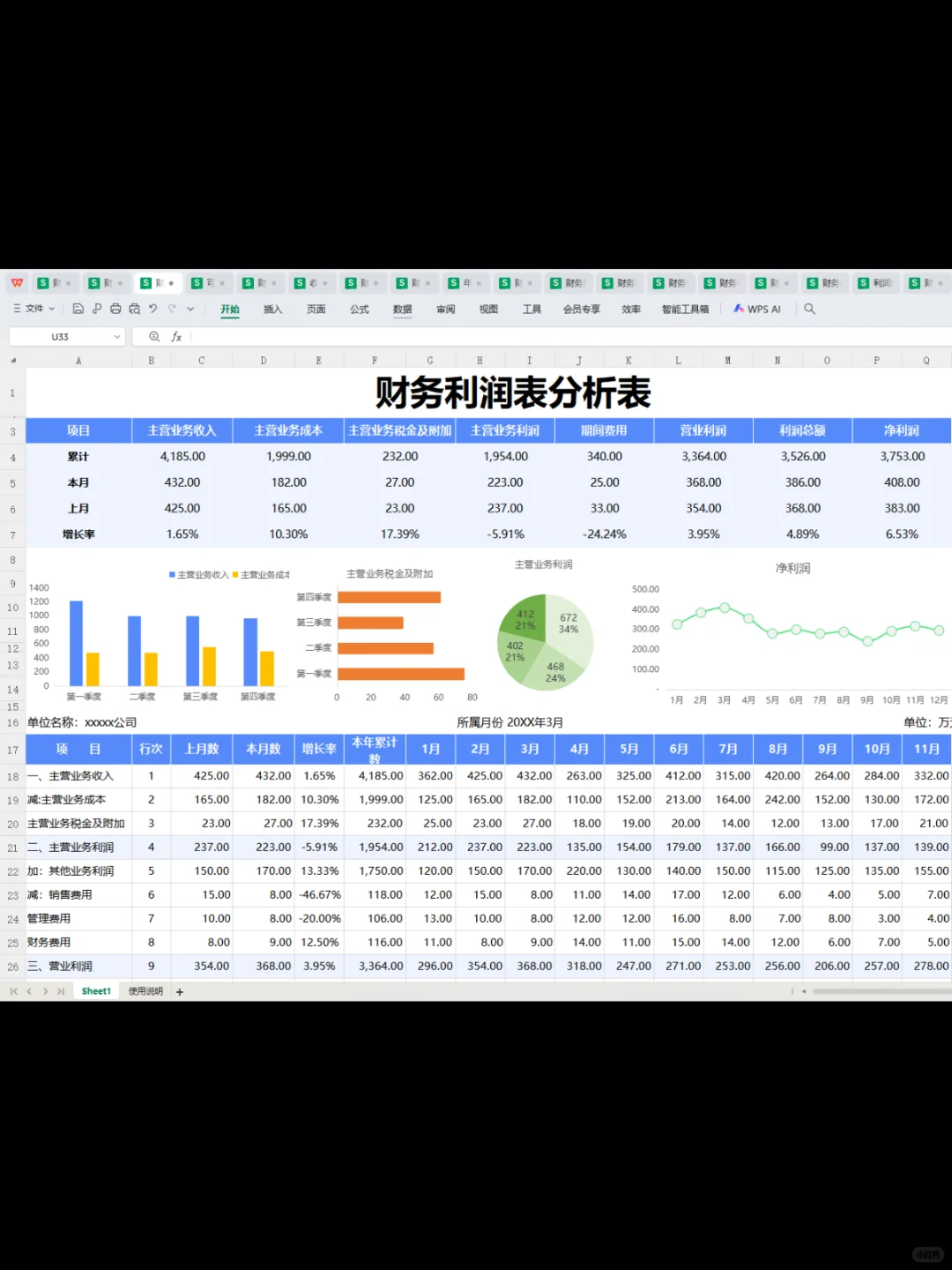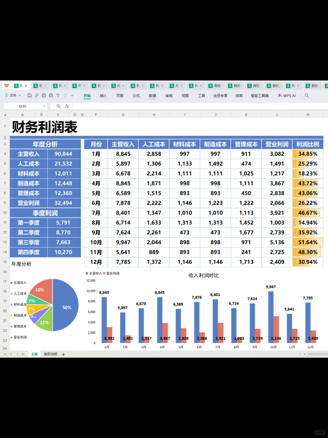 第一次见这么漂亮的利润分析表~让人眼前 一亮~这个表格自带函数公式,不用调,输入数据即可自动统计数据分析,简单明了!#工作日常 #会计 #会计实操 #会计工作 #财务报表 #利润分析 #利润分析表 #利润表分析