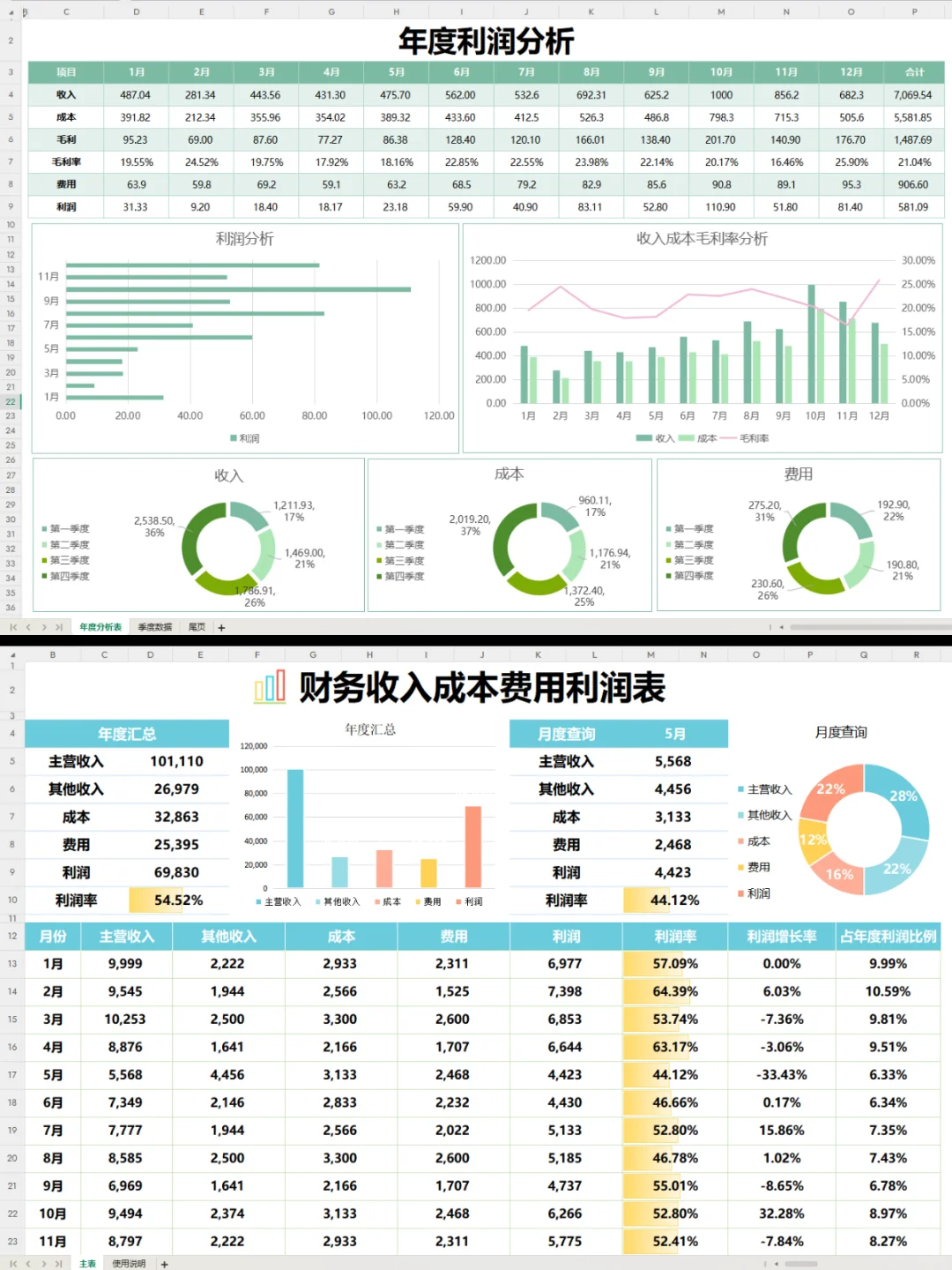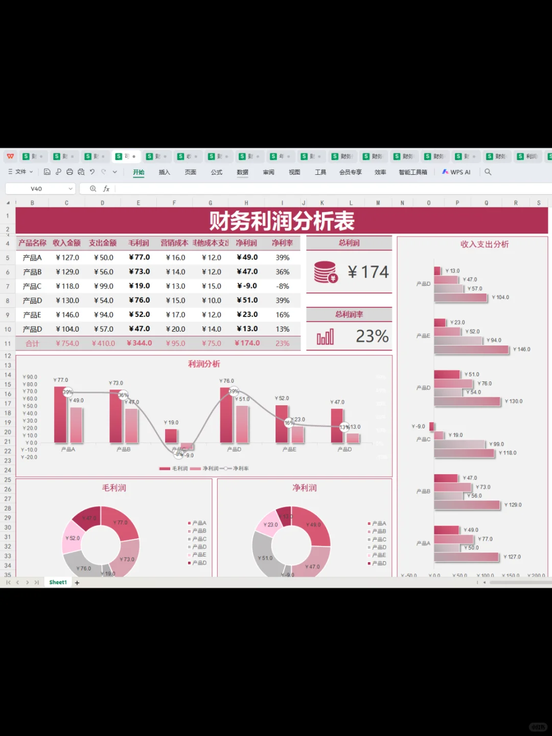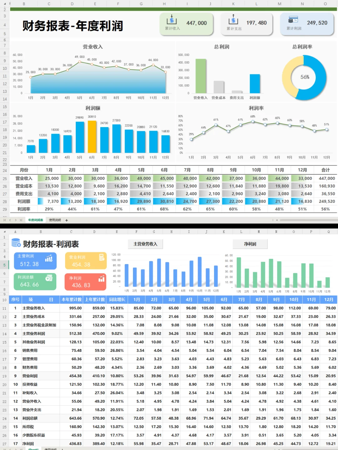 第一次见这么漂亮的利润分析表~让人眼前 一亮~这个表格自带函数公式,不用调,输入数据即可自动统计数据分析,简单明了!#工作日常 #会计 #会计实操 #会计工作 #财务报表 #利润分析 #利润分析表 #利润表分析
