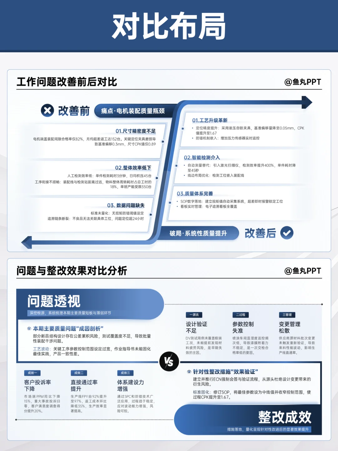 PPT里那些一眼忘不掉的排版布局 ①对比布局②项目排期③数据分析④思维模型⑤总分布局⑥时序布局 #述职报告 #工作总结PPT #工作汇报 #PPT实用技巧 #ppt #PPT模板 #ppt模版 #排版设计 #工作总结 #创意ppt