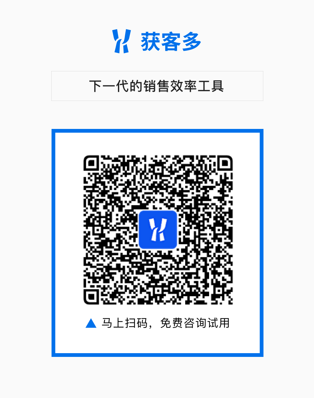 点击「阅读原文」联系我们,即可免费体验我们的产品。想要了解更多销售团队先进的管理与协作理念,也欢迎关注我们,获客多将加速你的业务增长。