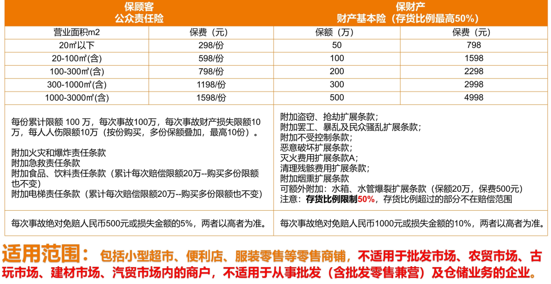 适用范围:包括小型超市、便利店、服装零售等零售商铺,不适用于批发市场、农贸市场、古玩市场、建材市场、汽贸市场内的商户,不适用于从事批发(含批发零售兼营)及仓储业务的企业
