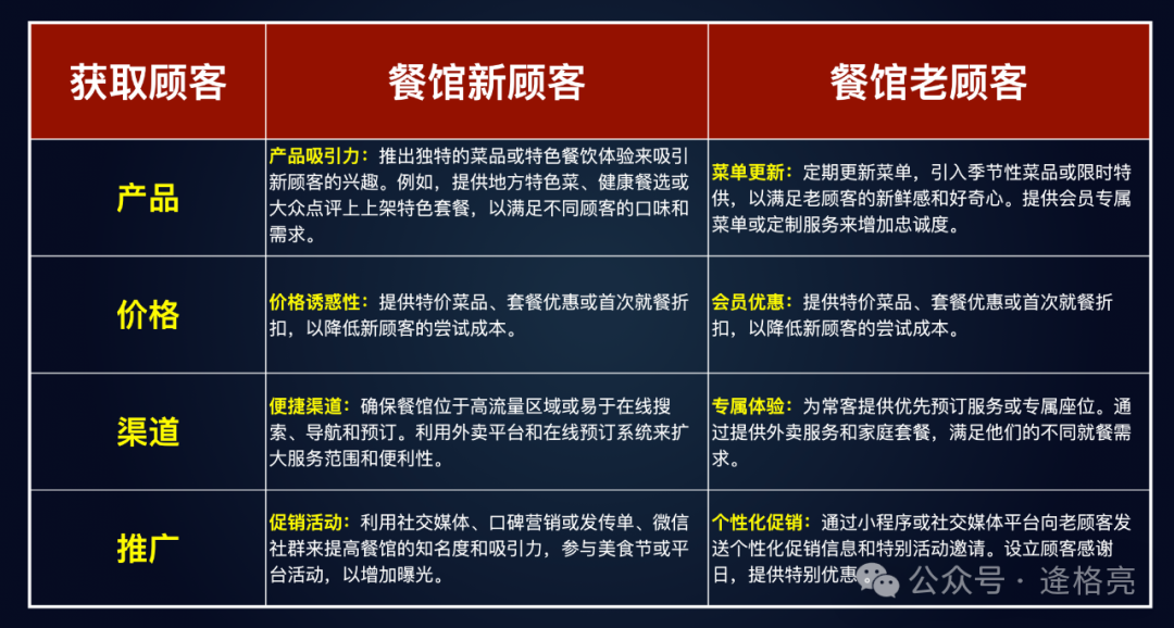 当然,快餐和慢餐策略自然也要根据情况,开展不同的获客策略。餐馆 4P 营销延伸阅读 :《一个餐馆的4P营销》