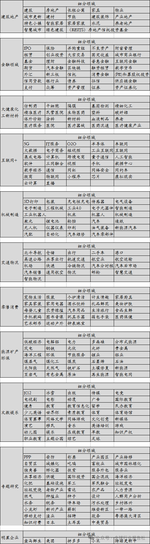 附报告覆盖行业范畴