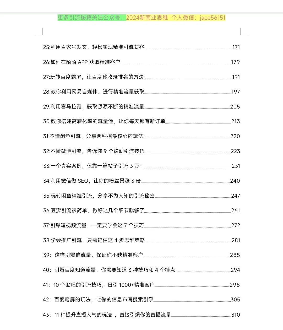 赠品二:深夜整理的这套69套自动获客引流技巧,PDF文档,方便学习观看,这是我自己看过的,并且觉得不错的文章,做了总结整理,一起分享给大家!(图片看不清就点开放大看)