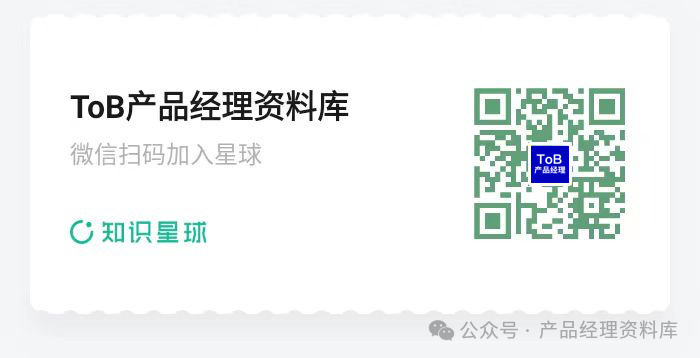 【ToB产品经理资料库】知识星球,涵盖了涉及ToB产品经理日常工作的高质量资料,内容囊括ToB产品经理知识、ToB产品竞品分析、ToB产品规划、ToB产品PRD需求文档、ToB产品流程图、ToB产品Axure原型、ToB产品UI设计、ToB产品技术架构、ToB产品操作手册、ToB产品经理简历等资料。