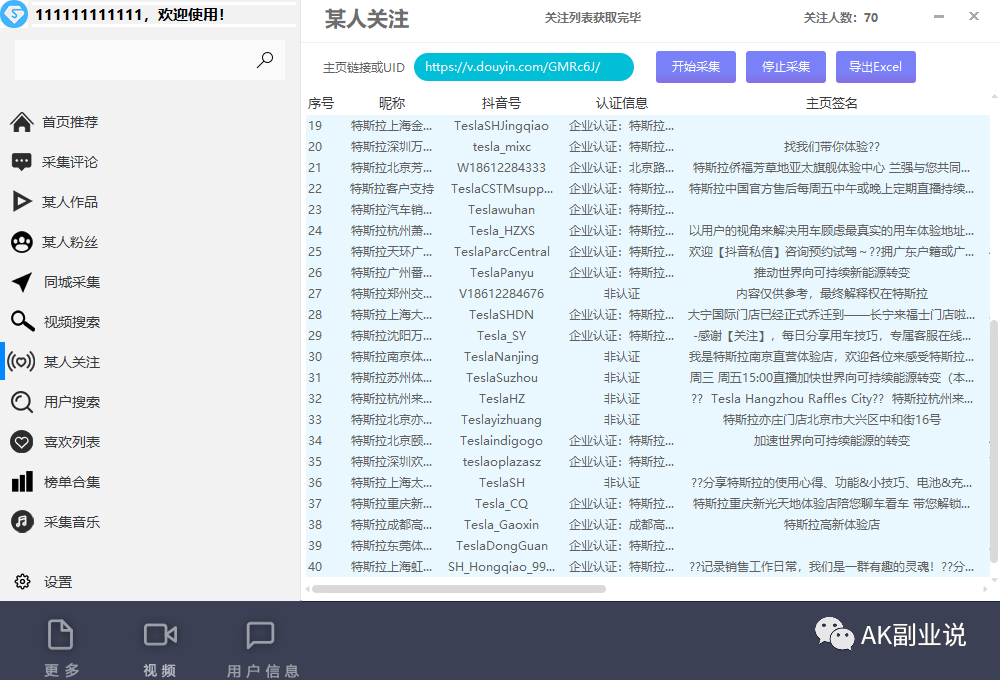 脚本功能:采集DY用户信息,支持自定义筛查,弹幕导出数据,软件采用多线程,弹幕支持Excel导出!