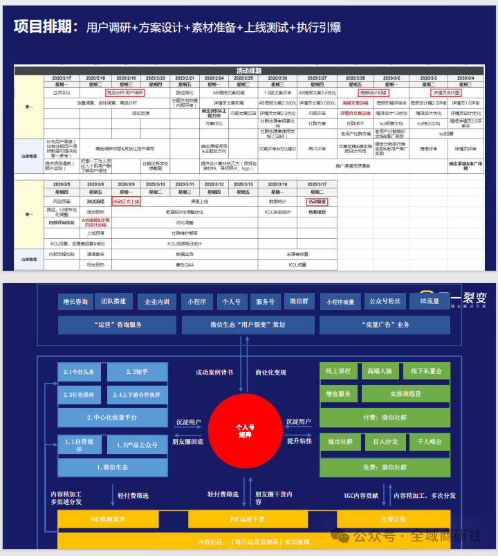 项目排期:用户调研+方案设计+素材准备+上线测试+执行引爆