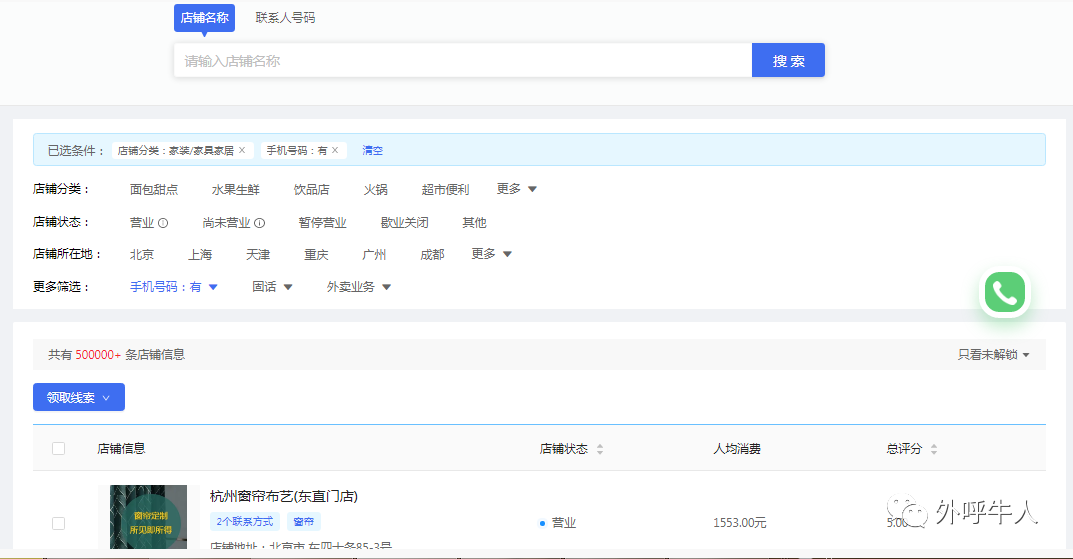 通过系统收集、整理、分类,可以快速查找到所需的店铺资源,高效,低成本获客。