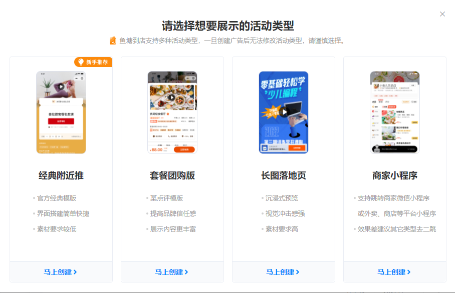 鱼塘到店产品适用于新店开业、老店宣传活动,一般适用于生活服务类型的企业。如健身瑜伽、餐饮门店、剧本密室、美容美发、按摩足浴、酒吧TV等。