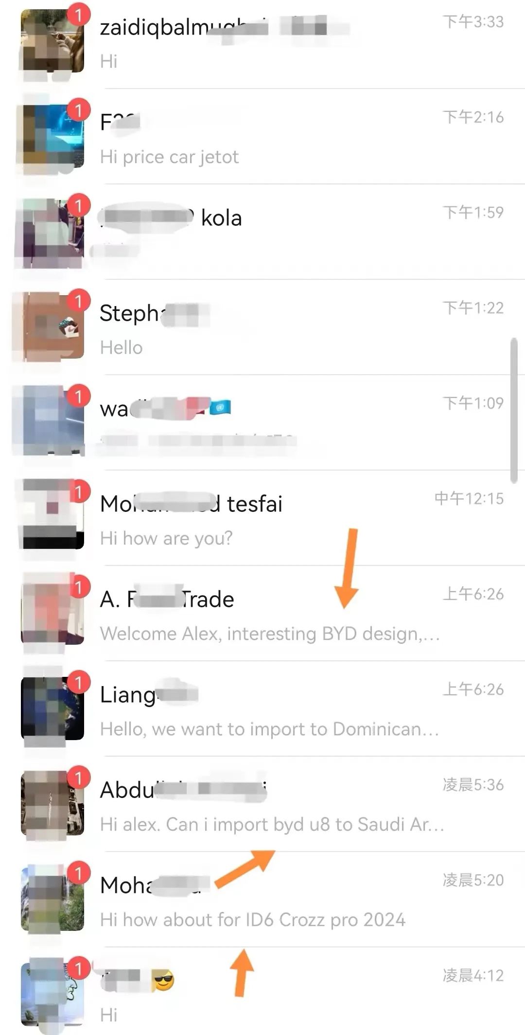 做汽车出口的各位老板您好,下面展示一下最近我学员实操汽车出口批量获客情况,客户来源地有俄罗斯中亚中东,也南美洲非洲东南亚等,全球的客户都有,我们只需要挑选一些我们想做的国家的客户就行了。下面的截图仅仅是其中一小部分