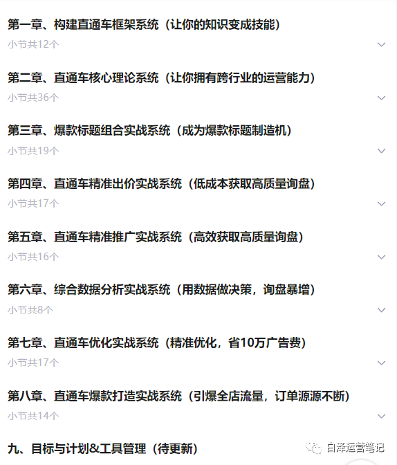 这是一门国际站全站运营系统课,全面、系统的综合实战技能提升课程。注意:以下是仅是大板块内容展示,每个大板块会拆分成多个小节内容学习要学框架,学核心逻辑,掌握本质原理才能灵活应用,学习内容不在于多少,而在于能让你构建自己的思维框架,并不断调用,解决日常问题,拿到好成绩。如果你想提升运营技能,把店铺做出好成绩,欢迎你加入《白泽国际站运营实战系统:高质量询盘增课》系统学习提升,搭建个人运营知识框架,构建一套属于自己的运营思维体系,让所学的运营技能变成你的价值,掌握的运营技能实现灵活应用,举一反三,不再因为平台的变化而苦恼!让你拥有可迁移的运营实战能力,用1年超越别人3年的运营能力,实现升职加薪!欢迎关注:“白泽运营笔记”更多的运营实战技巧分享,一起学习交流,一起成长进步。