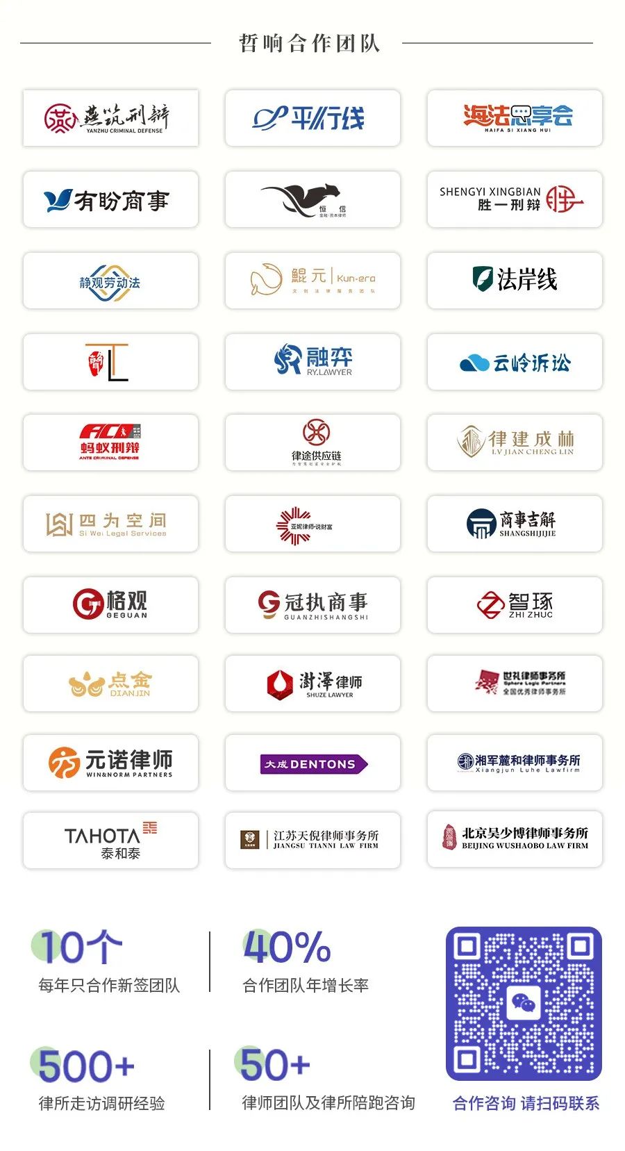 以卓安律师事务所为例,为了更好地拥抱互联网,庭立方作为我们的“运营中台机构”,统一负责律所的运营管理事项。我们也专门成立了流量运营团队,负责前端宣发和中端转化,成立了服务交付团队,制定了一套办案标准化流程和规范,帮助律师提升专业能力和效率。