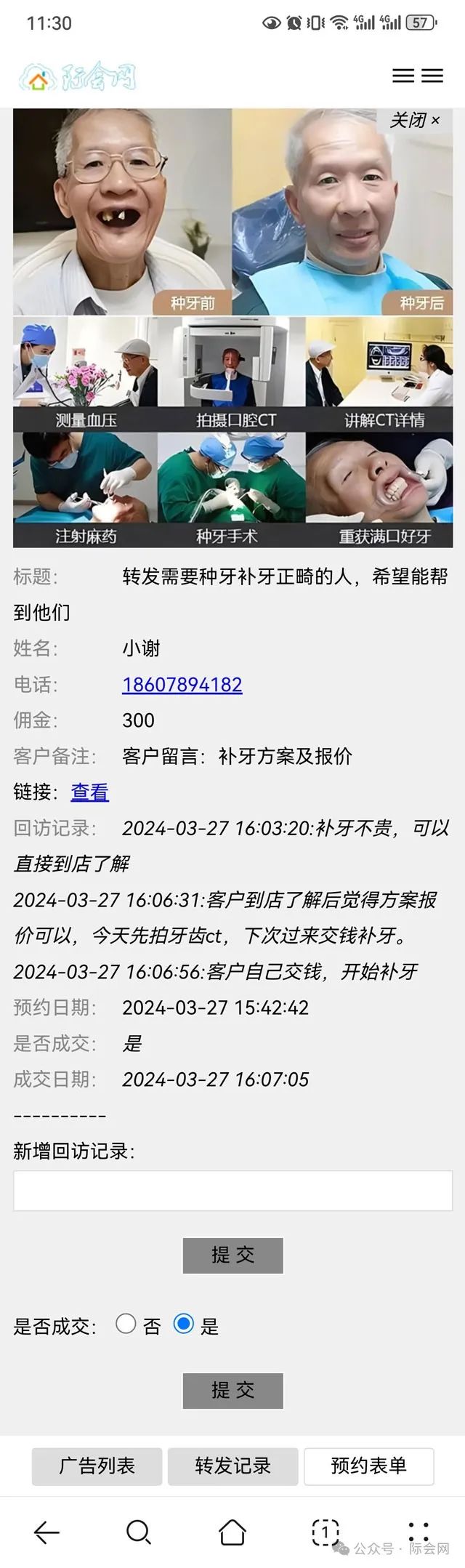 企业在会员中心反馈跟单情况及是否签单