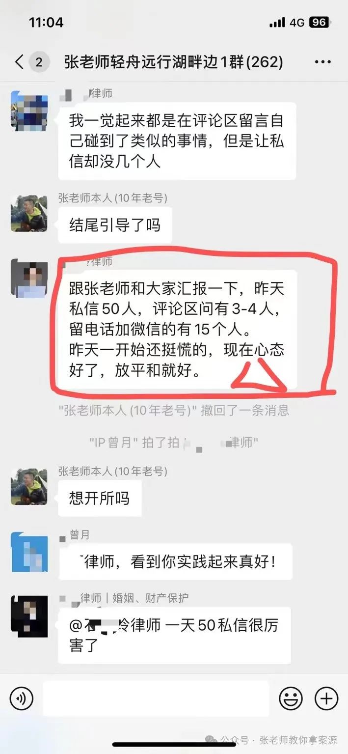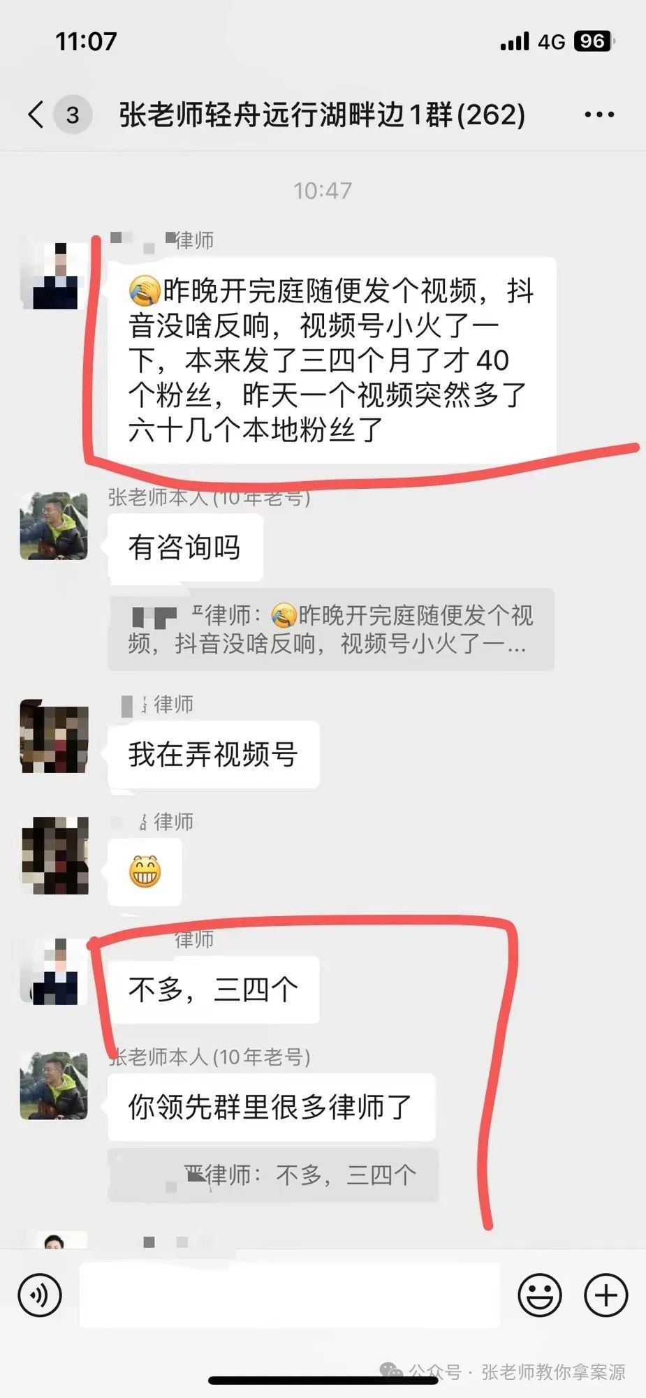我们为律师提供了自媒体交流的平台,实时分享最新的平台规则和账号运营方法,从短视频流量到个人包装、价值塑造、谈案成案,真正地陪伴每一个律师突破案源瓶颈。