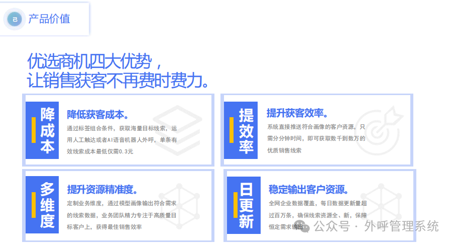 目前,通过大数据将广告定向投放到目标人群的形式十分普遍,但是这类广告比较适合面向C端的普遍性产品。对于一些针对性强,只有小部分人群购买的产品,或者对于B端销售来说,大数据广告并不能作为主要的销售手段,更多的是通过网络渠道获取客户,进行后续业务沟通。