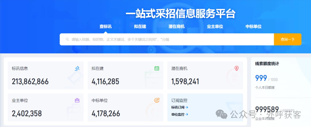 沃创云外呼获客系统,全网首个招投标AI大数据智能筛选获客,可以帮助各大企业查项目,找商机,实时获取不同的项目,开发采购商机找到意向客户。
