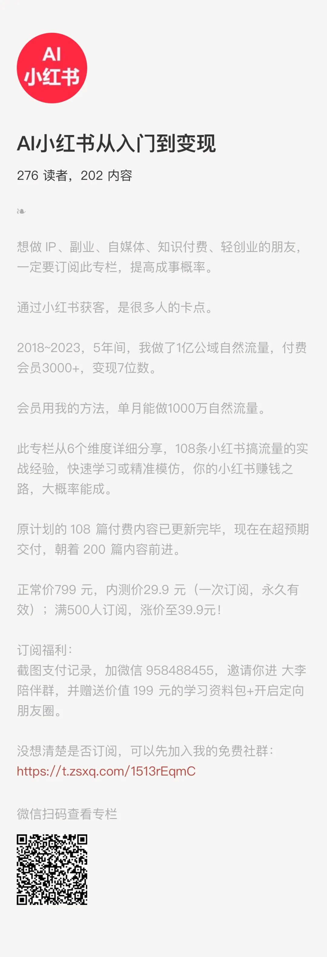 私教详细介绍,请看这篇文章:大李AI小红书变现私教正式上线,加速小红书获客变现(点击即可查看)