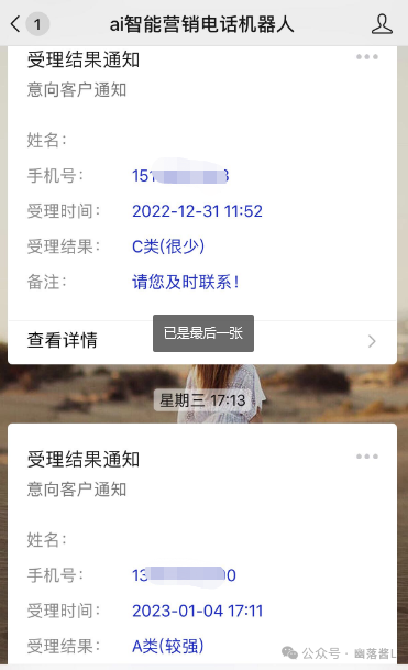 工作效率高。自动拨打电话,通话过程录音,完成后会将该通电话按客户意向程度进行分类,自动推送到你的微信上,工作人员只需对高意向客户回访即可,这样就提升了整个电销企业电销人员群体的工作效率。