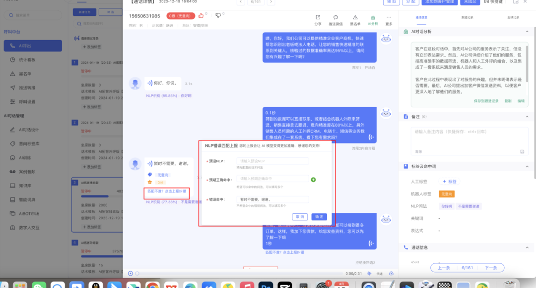 可以上报 NLP 错误信息,点击任务中的文本即可上报