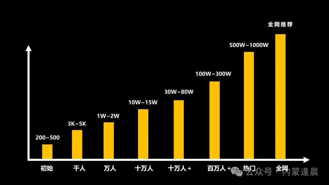 在初期,你刚发布视频,会有200~500的流量,然后随着用户的反馈数据来判断是推向更大的流量池,还是中断推送。