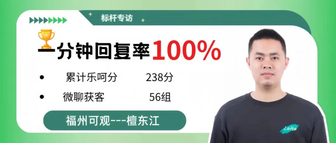檀东江深刻意识到微聊一分钟响应的重要性,积极利用微信服务号通知功能,做好及时回复的他,一直保持着一分钟响应率100%的成绩。