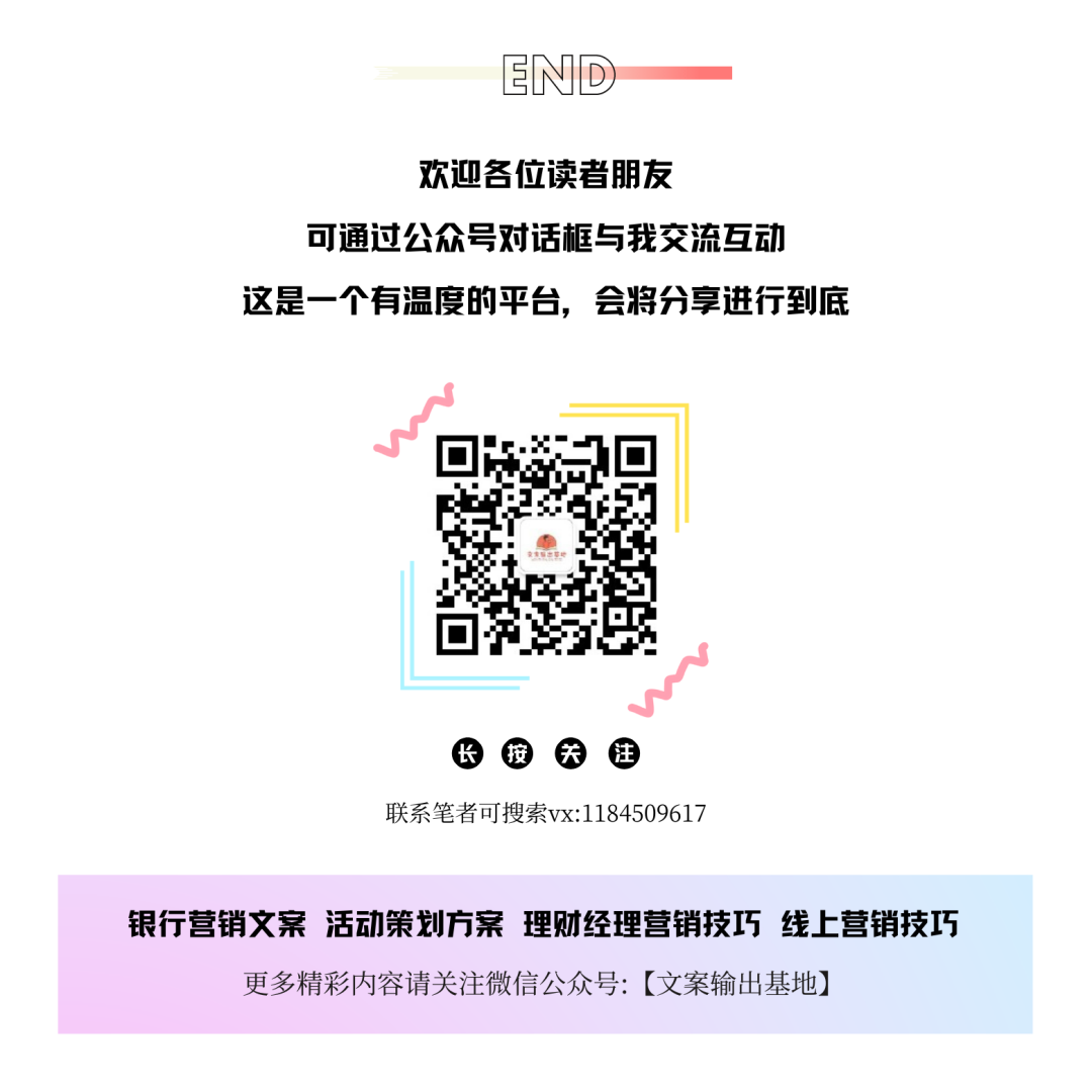 一般可以有三点价值服务:一是咨询服务,以后有银行相关的存款、贷款、理财、结算等的任何业务,都可以随时咨询;二是专业服务:可以为客户分享存款、理财、基金、保险等专业知识或是对财经时事解读,帮客户解决一些实际问题;最后是福利提醒:行内有对应的活动或是客户可以享受到的对应权益和福利,可以及时提醒客户,避免错过。