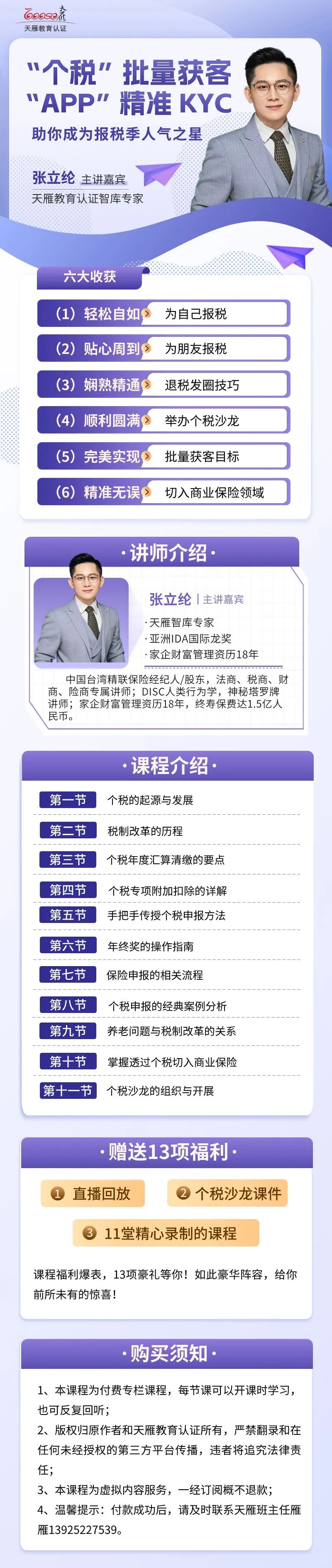 在这个数字化高速发展的时代,掌握税务知识和客户维护技巧已经成为行业精英的必备技能。为此,我们隆重推荐一门由天雁智库专家张立纶老师主讲的专栏课程——个税批量获客,APP精准KYC。张老师不仅拥有家企财富管理18年的丰富经验,更是亚洲IDA国际龙奖的得主,他的课程将为您带来全新的税务和客户管理视角。
