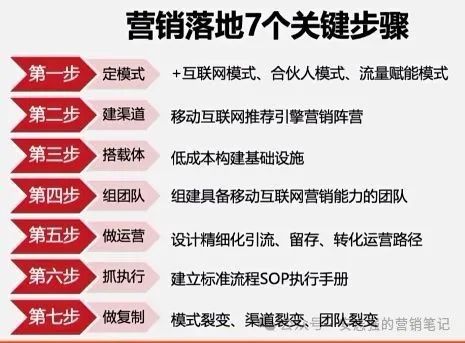 企业营销落地7个步骤:定模式,建渠道,搭载体,组团队,做运营,抓执行,做复制