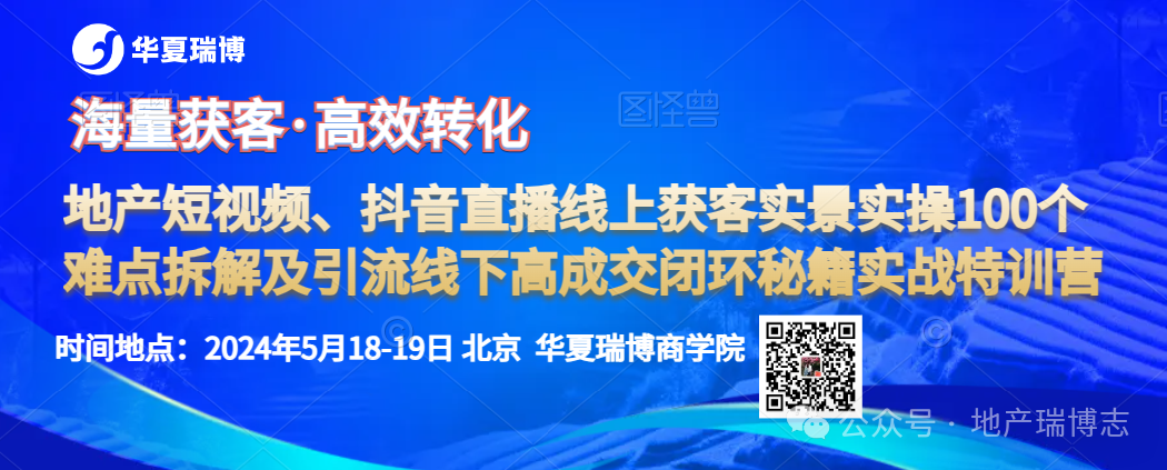 抖音获客:2024年5月18-19日北京《地产短视频、抖音直播线上获客实景实操100个难点拆解及引流线下高成交闭环秘籍实战特训营》