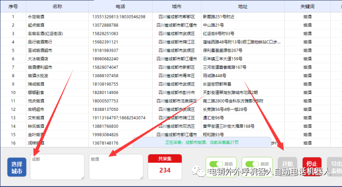 系统主要功能:1、根据地区关键词,一键采集客户手机号,可以一键导出