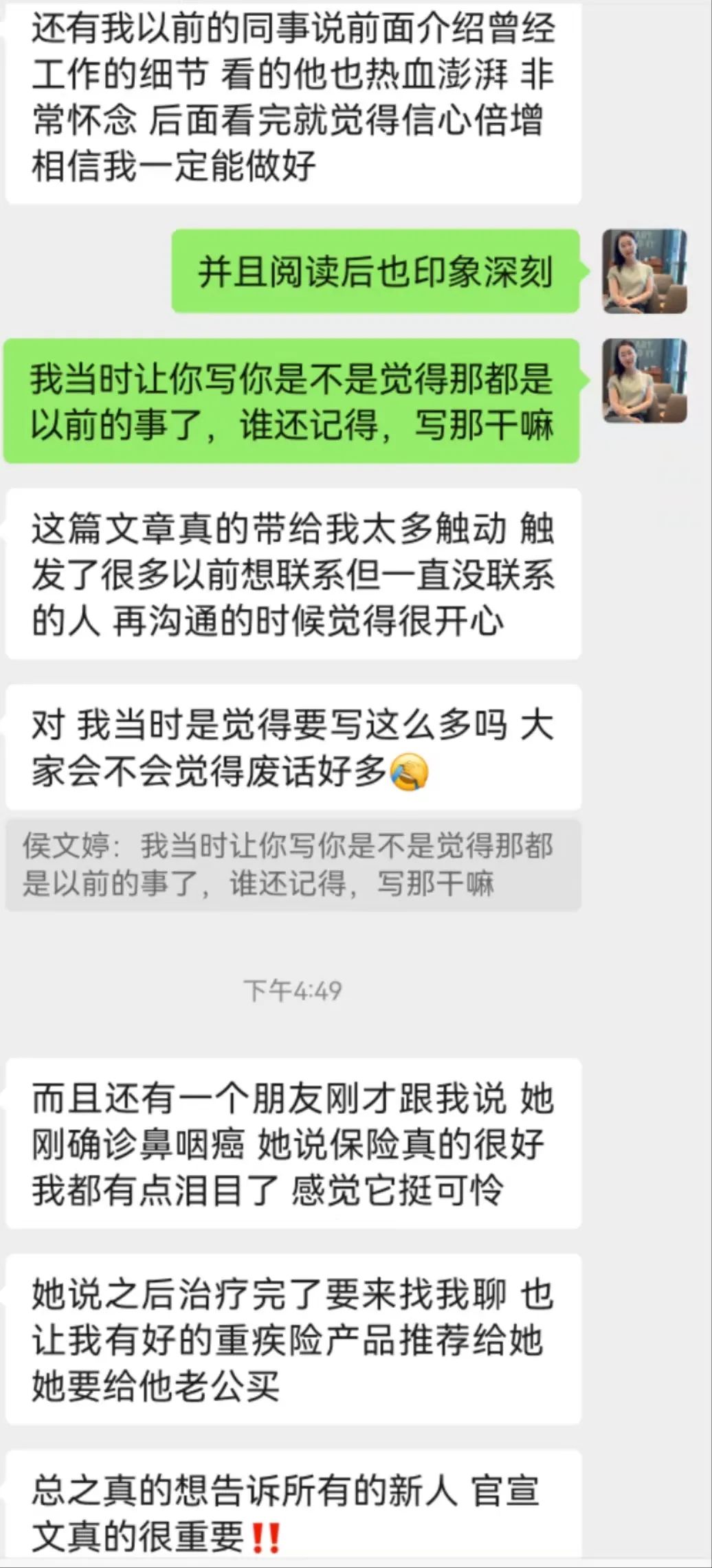 陆陆续续就产生了咨询、成交和转介绍,到今天我服务的客户数量已经超1000+了,团队伙伴也遍布全国各地,所有入职的新人我都会告诉他们官宣文的重要性。