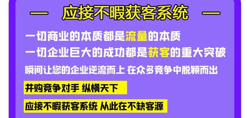 流量,可以说是现代商业的命脉。无论是线上还是线下,没有足够的流量支撑,再优质的产品和服务也难以被大众所熟知。因此,获客成为了企业成功的关键所在。而“应接不暇获客系统”正是基于这一核心理念,通过一系列精心设计的策略和方法,帮助企业实现流量的快速增长。