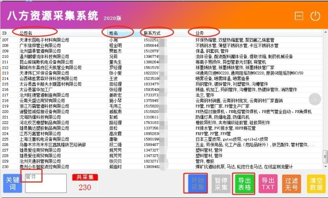 采集数据后,支持一键导出为EXCEL表格,方便业务员筛选跟进。