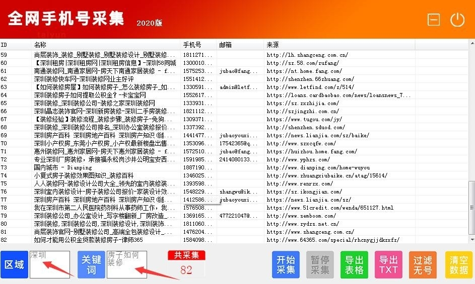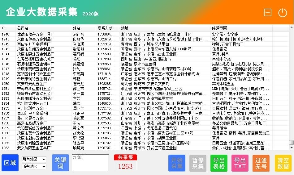 20种采集渠道:企业名录采集、全能地图采集、客户综合搜索、企业大数据采集、黄页88信息采集、阿里巴巴信息采集、慧聪网会员信息采集、全网手机号采集等。