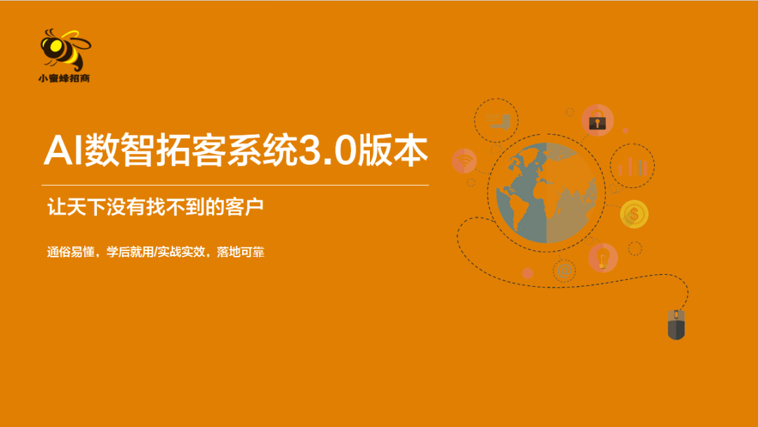 2024年小蜜蜂招商升级AI数智拓客系统到3.0版本,更高效更精准,20种采集渠道,掌握全国95%的大数据,每天实时更新数据,精准锁定客户资源;自动添加微信功能,低成本、高效率解决客户微信添加问题,一人便可操作,减轻业务员工作量;更多附带功能等你来发现,赶紧联系我们,了解更多吧!