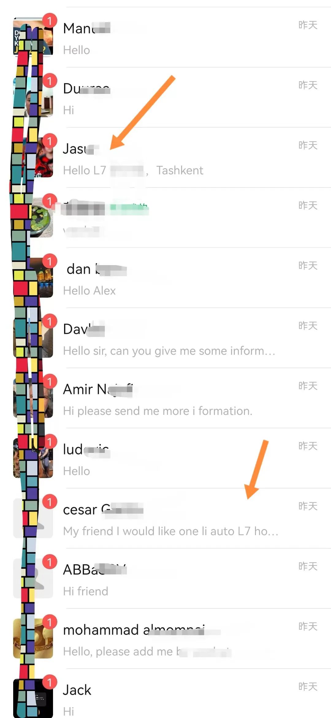 做汽车出口的各位老板您好,下面展示一下最近我学员实操汽车出口批量获客情况,客户来源地有中东中亚,也南美洲非洲东南亚等,全球的客户都有,我们只需要挑选一些我们想做的国家的客户就行了。下面的截图仅仅是其中一小部分