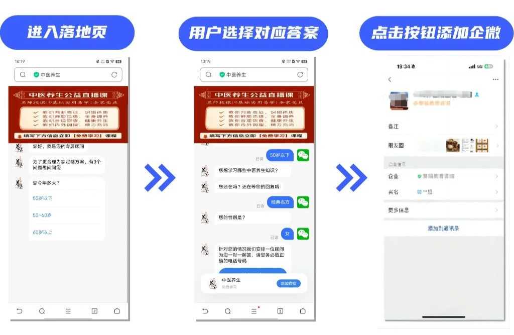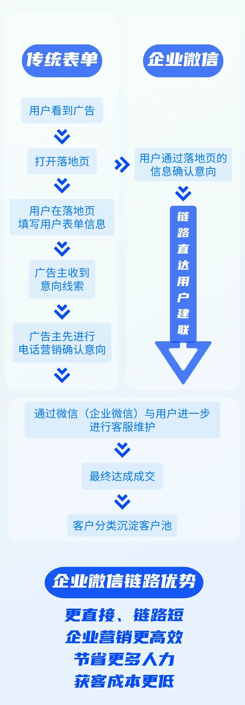 传统表单的获客形式与企业微信私域获客转化形式对比: